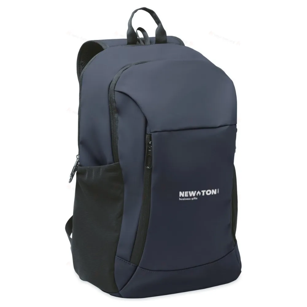 Рюкзак для ноутбука 15 дюймов из полиуретана с мягкой спинкой и основным отделением на молнии. Передний карман на молнии, 2 передних боковых кармана на молнии и 2 эластичных сетчатых боковых кармана. Подкладка из 210D RPET.