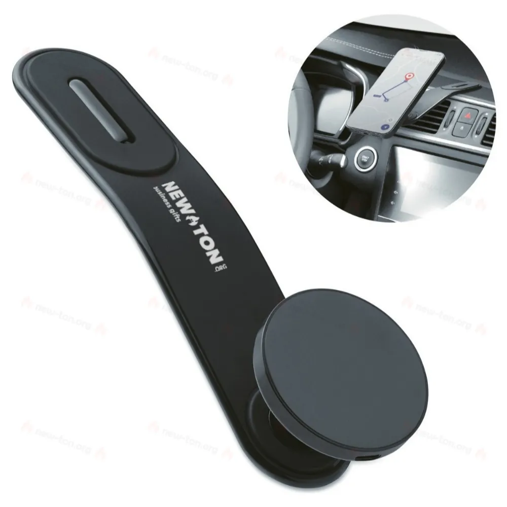Flexible car mount magnetic wireless charger 15W with phone holder and hook and loop mount. Compatible with iPhone® 12 and newer. Including additional magnetic metal ring to support charging of other non-magnetic wireless chargeable phones.