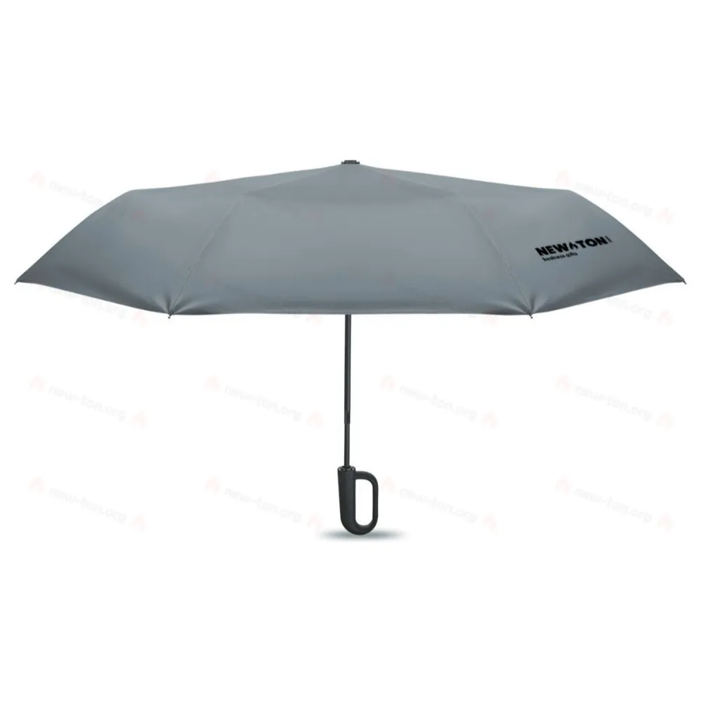 "Складной ветроустойчивый зонт 21"" из эпонжа RPET 190T с каркасом и спицами из стекловолокна. D-образная ручка-карабин с резиновым покрытием. Автоматическое открывание и закрывание. В комплект входит чехол."