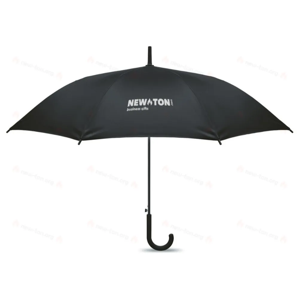 23-дюймовый полуавтоматический зонт из эпонжа 190T с металлическим каркасом и спицами из стекловолокна. Пластиковый наконечник. Изогнутая ручка из прорезиненного полипропиленового пластика.