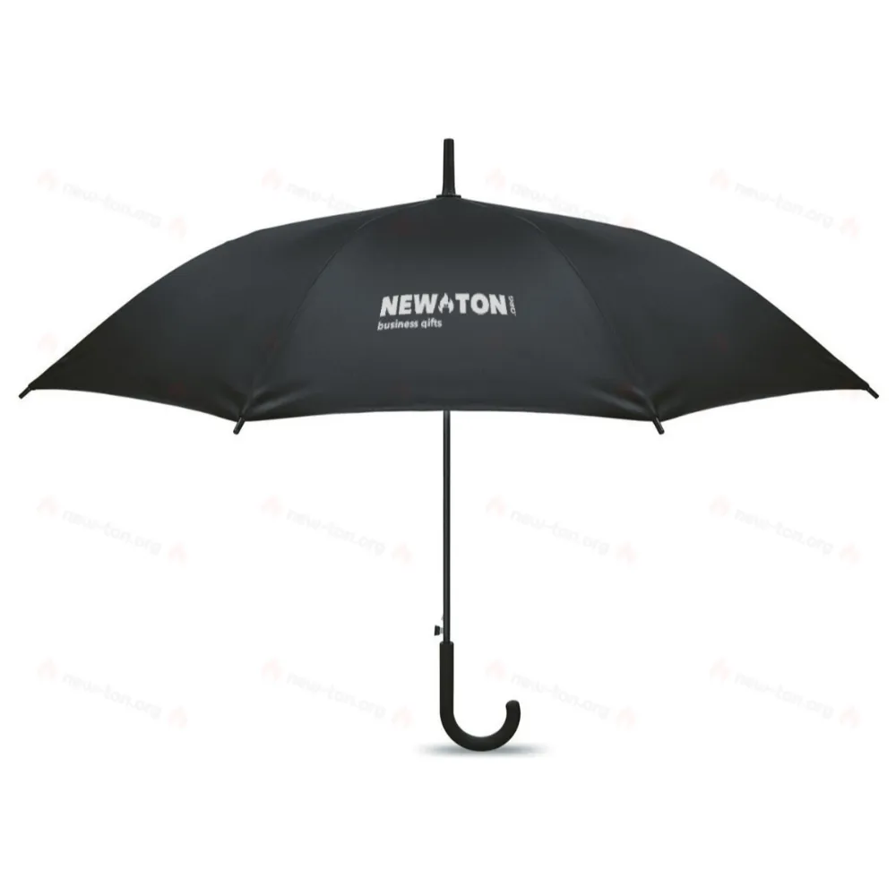23-дюймовый полуавтоматический ветроустойчивый зонт из эпонжа 190T с каркасом и спицами из стекловолокна. Пластиковый наконечник. Прорезиненная изогнутая ручка из полипропилена.