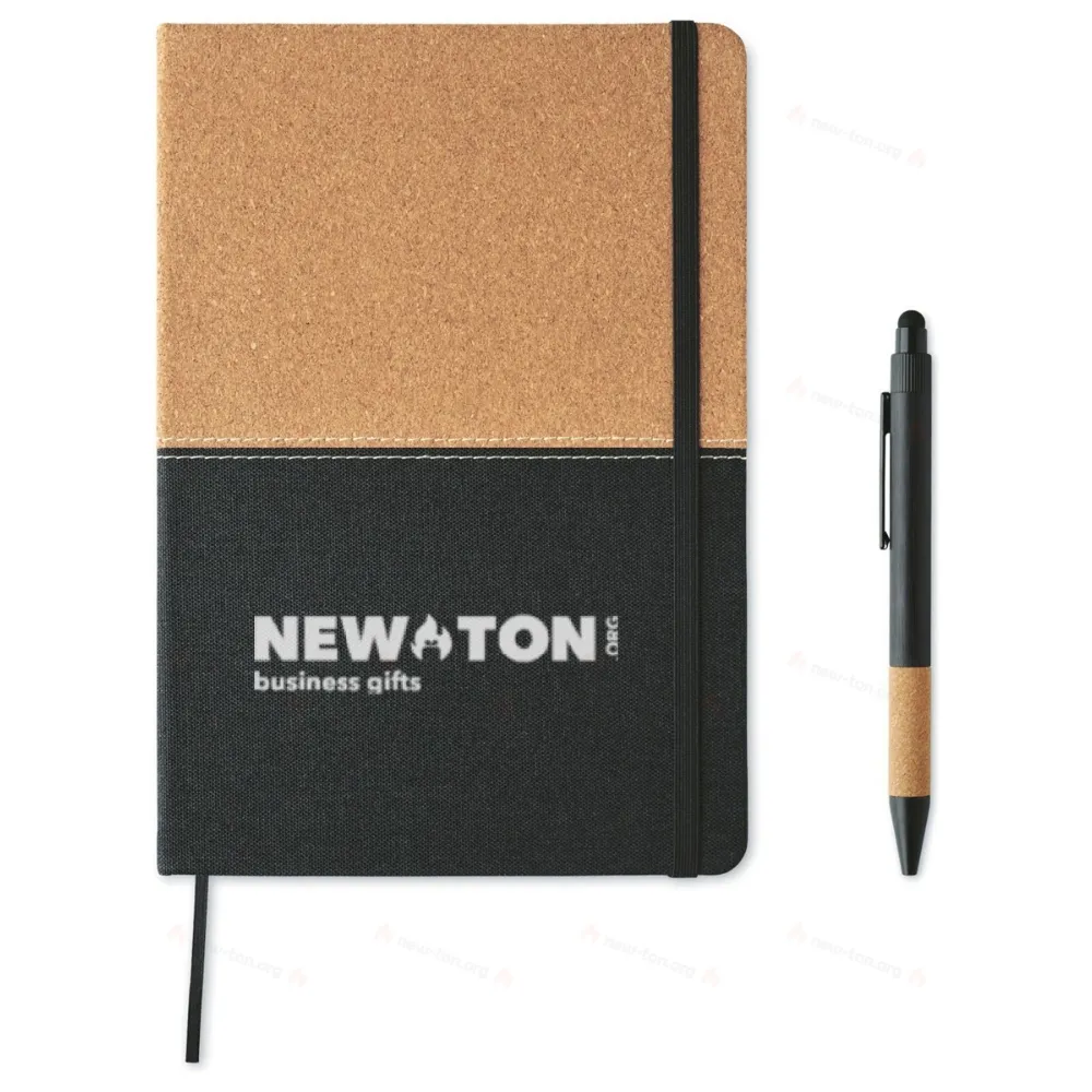 Подарочный набор из 3 предметов, включающий в себя термобутылку из нержавеющей стали с двойными стенками объемом 500 мл, блокнот формата А5 в твердой обложке из RPET и пробки со 160 линованными страницами из переработанной бумаги (80 листов) и алюминиевую шариковую ручку. Синие чернила.