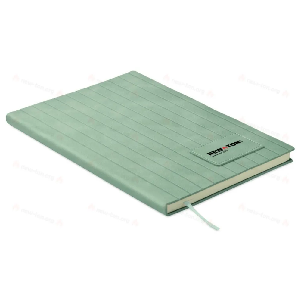 Блокнот формата А5 в мягкой ​​полиуретановой рифленой обложке, на 40% состоящей из переработанных материалов и на 60% из полиуретана. 160 страниц в линейку, переработанная бумага плотностью 70 г/м² (80 листов). Закладка для страниц из полиэстера в цвет блокнота.
