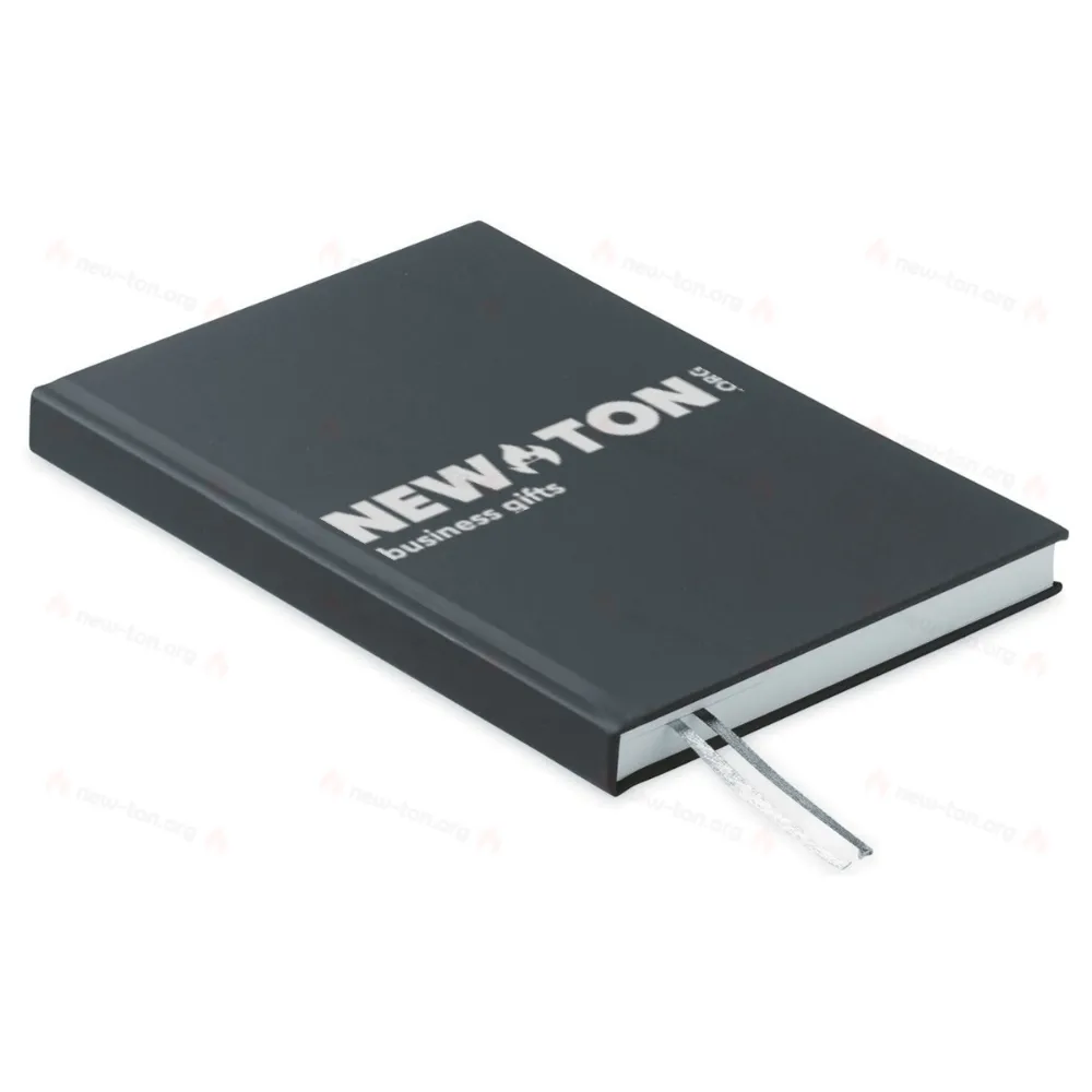 Блокнот формата А5 в обложке из переработанного полиэстера (60%) и полиуретана (40%). Переплет. 256 линованных страниц из переработанной бумаги 70 г/м² (128 листов). 2 закладки из полиэстера.