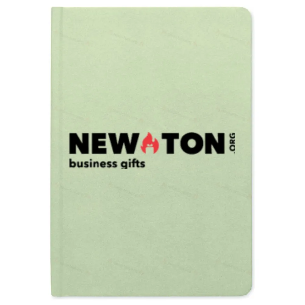 Блокнот формата А5 в твердой обложке со 160 линованными страницами (80 листов) из биоразлагаемого пластика из сахарного тростника (65% волокна сахарного тростника/35% бумаги). Переплет.