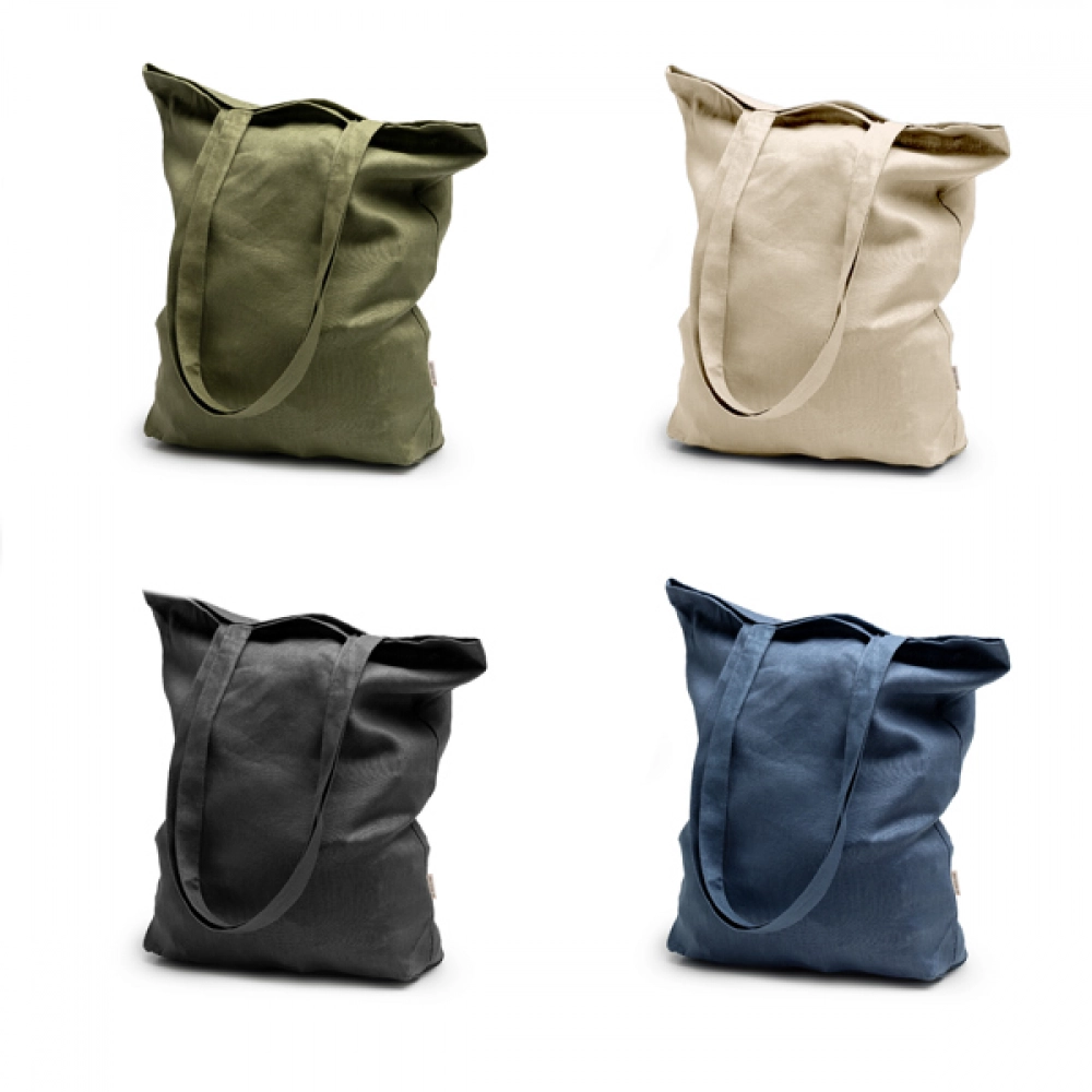 Сумка с боковиной из 100% конопляной ткани (200 г/м²). Усиленные ручки длиной 70 см.