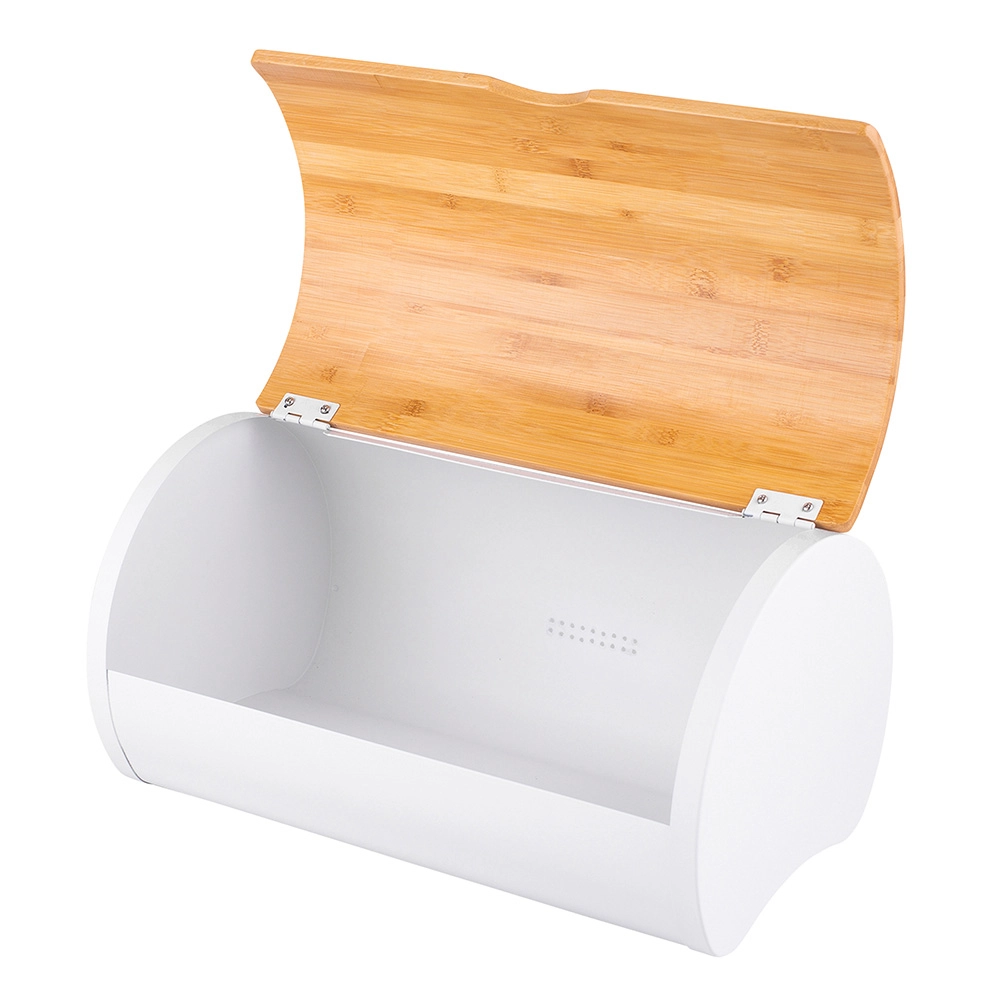 Белый хлебница из стали с крышкой из бамбука 37,7x24,3x20,4 см
