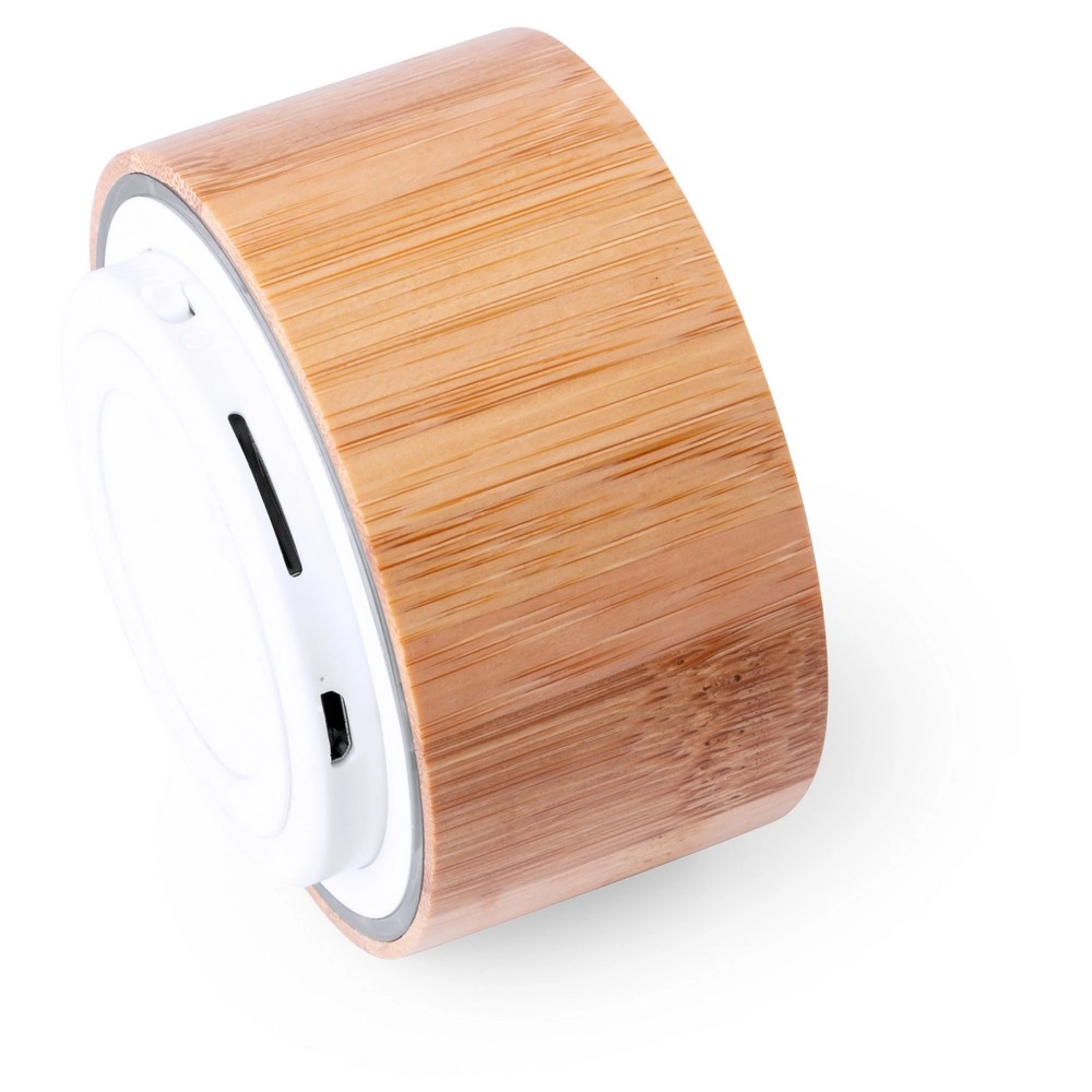 Компактная колонка из бамбука. Поддержка Bluetooth® и мощность 3 Вт. Функция громкой связи, FM-радио, слот для карты micro SD, антискользящее основание и возможность зарядки через USB-кабель - включенный в комплект. Представлена в привлекательной коробке дизайна.