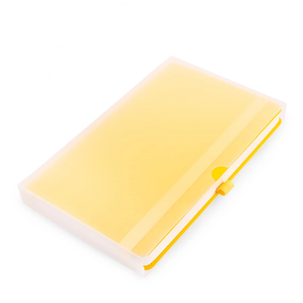 Самый популярный блокнот в твердой обложке, с эластичной резинкой, пенхолдером и ляссе в тон.Термоактивный классический PU материал Silk PlusЦвет обложки, близкий к Pantone 2292UВнутренний блок 256 страниц в линейкуИдеально скругленные углы блокаПерфорированные 8 последних листовКремовая FSC бумага 70г м2Карман для мелочейИндивидуальная упаковка: прозрачный сливбокс