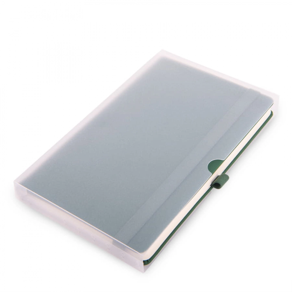 Самый популярный блокнот в твердой обложке, с эластичной резинкой, пенхолдером и ляссе в тон.Термоактивный классический PU материал Silk PlusЦвет обложки, близкий к Pantone 3435СВнутренний блок 256 страниц в линейкуИдеально скругленные углы блокаПерфорированные 8 последних листовКремовая FSC бумага 70г м2Карман для мелочейИндивидуальная упаковка: прозрачный сливбокс