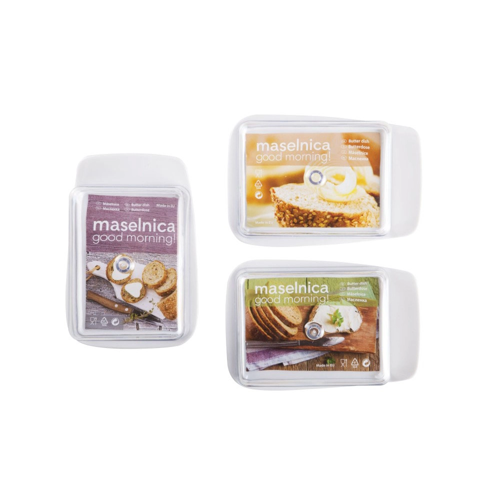 Красивая пластиковая масленка — это практичный способ эстетичного и гигиеничного хранения и подачи масла. Благодаря закрывающейся крышке, масленка защищает масло от порчи, загрязнений и проникновения запахов, сохраняя его свежесть и вкус на долгое время. Продукт имеет достаточно большой объем, чтобы вместить целую пачку масла, а прозрачная верхняя часть позволяет легко контролировать содержимое. Цветное пластиковое основание придаёт ей привлекательный вид, идеально вписываясь в интерьер любой кухни или столовой.