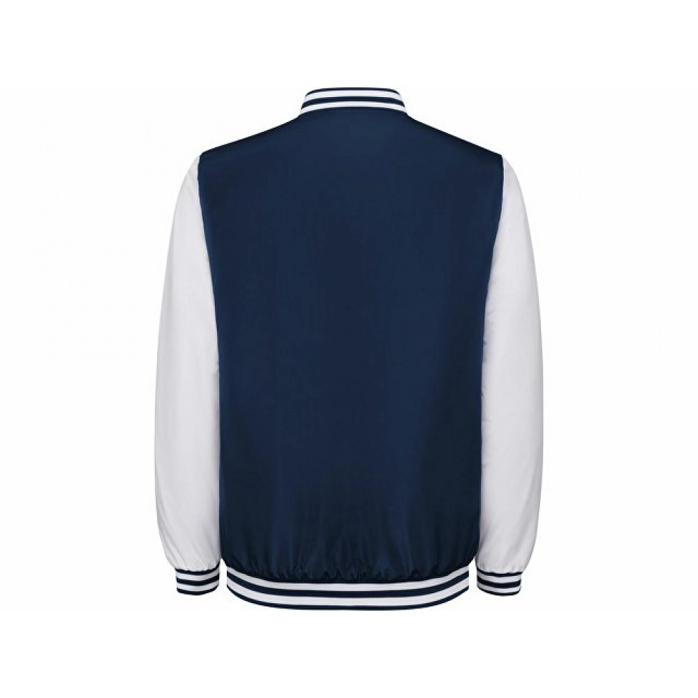 Утепленный бомбер колорблок из двух цветов. Воротник, манжеты и низ из риба 1х1 с двумя контрастными полосами. Боковые карманы закрываются на молнию. Контрастный кнопки.