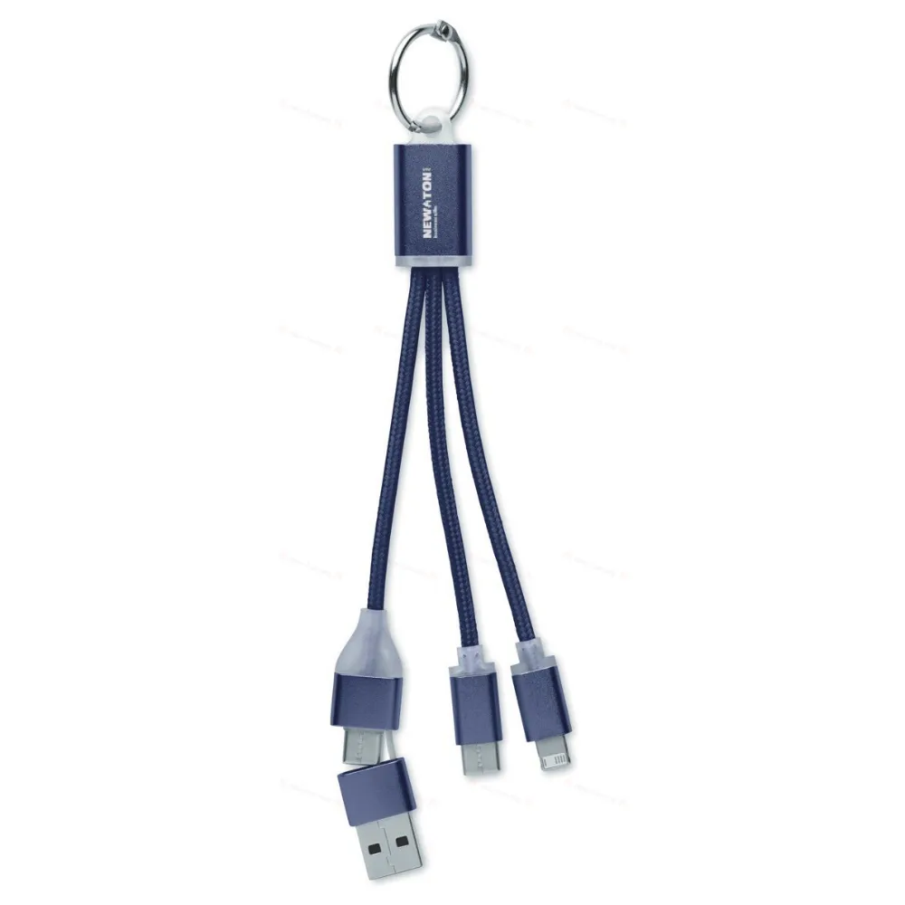Брелок с зарядным кабелем, имеющий входы: 2-в-1 Type-C и Type-A, а также micro-B (2 в 1) и выход Type-C.