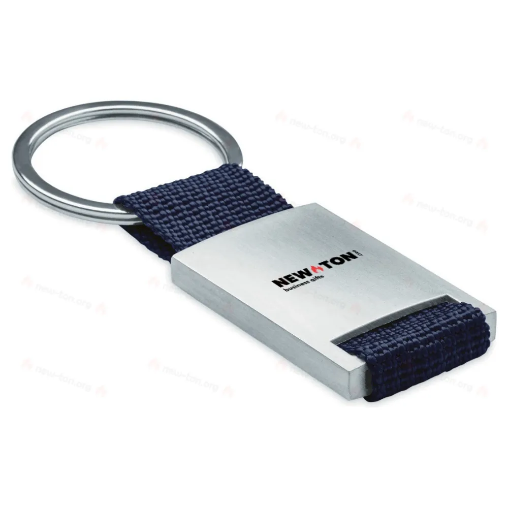 Металлический прямоугольный брелок с цветной полиэфирной лентой. Упакован в подарочную картонную коробку.