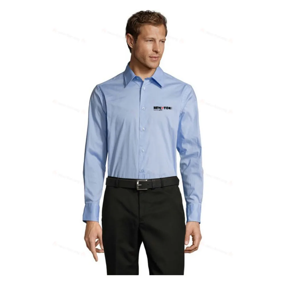 SOL'S BRIGHTON, мужская рубашка с длинным рукавом из эластичного материала, 97% хлопок - 3% эластан, поплин-стрейч 140, приталенный крой, длинные рукава, воротник с одной пуговицей, манжеты с 2 пуговицами и прорезью, планка на 7 пуговицах в тон. Информацию о соответствии размеров см. в таблице размеров в разделе «Документация по продукту».