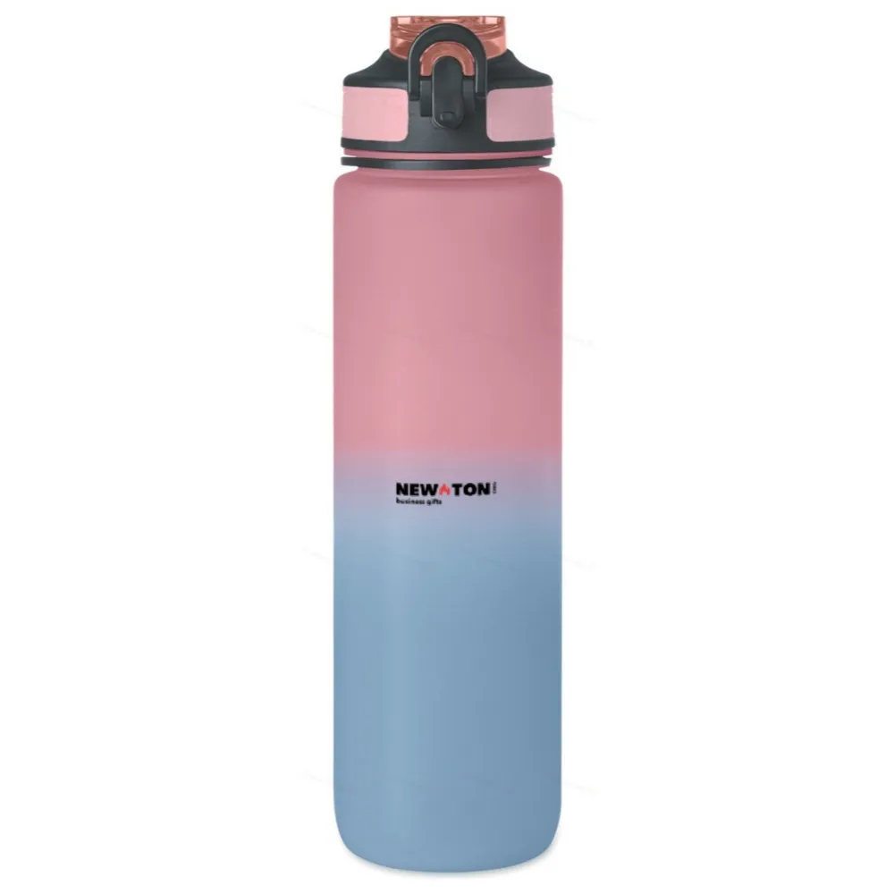 Спортивная бутылка для воды из переработанного пластика со встроенной соломинкой для питья, мягким силиконовым горлышком, разметкой, регулирующей потребление жидкости, удобной крышкой с замком безопасности и ремнем для переноски. Объем 1 л.