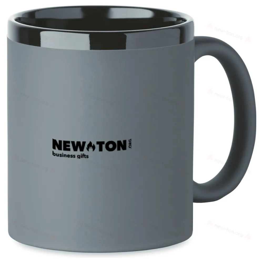 Керамическая кружка с покрытием soft touch, черной внутренней частью и ободком. Подходит для гравировки. Емкость: 300 мл. Упакована в белую картонную коробку.