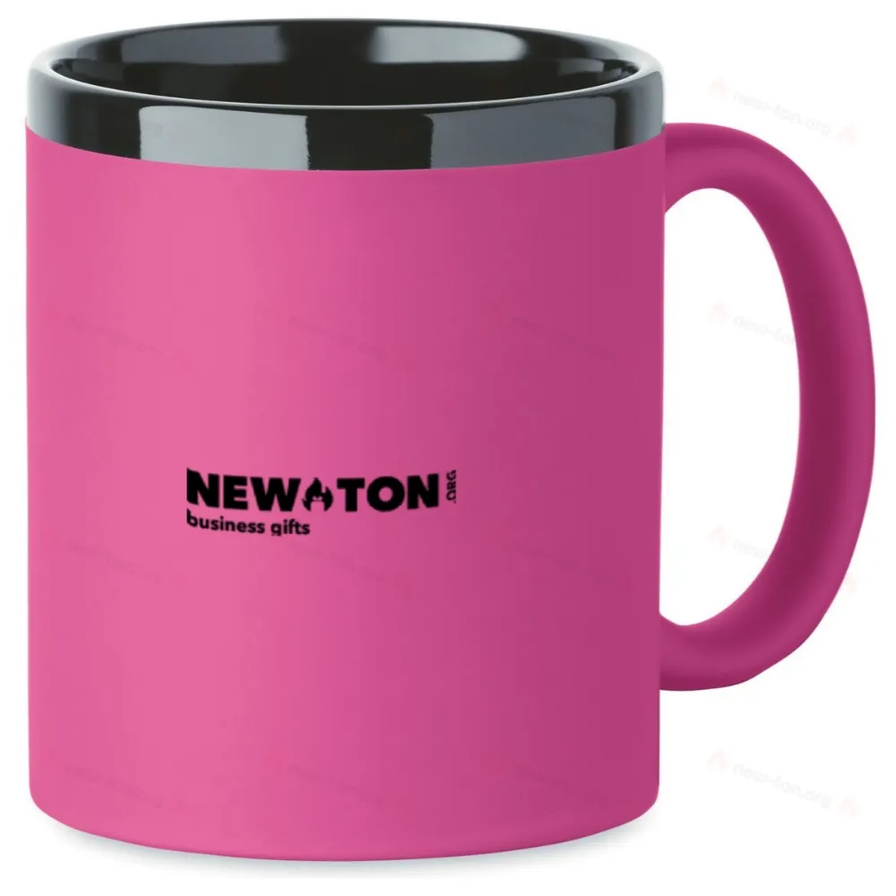 Керамическая кружка с покрытием soft touch, черной внутренней частью и ободком. Подходит для гравировки. Емкость: 300 мл. Упакована в белую картонную коробку.