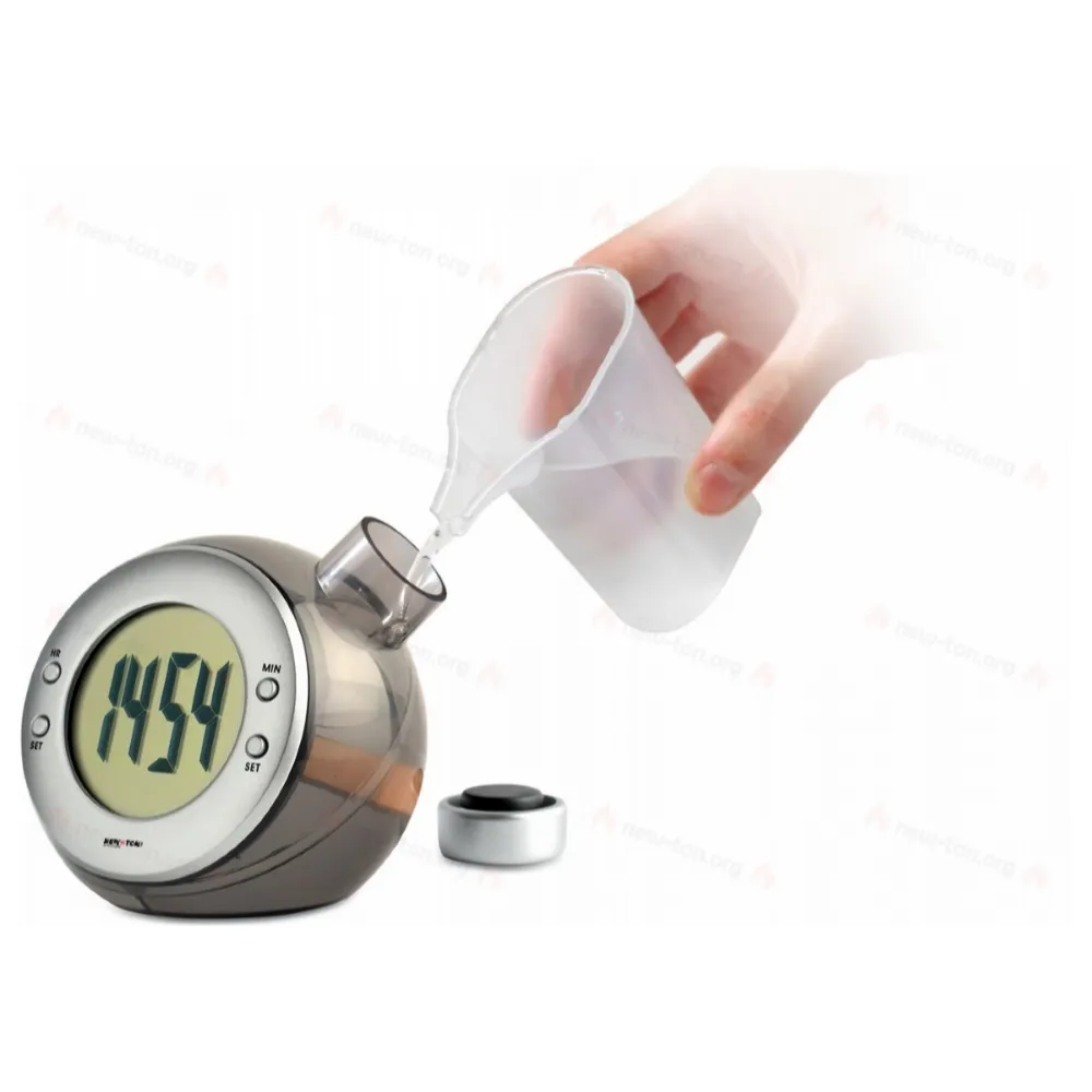 Электронные часы, работающие на энергии воды. Не требует других источников питания.