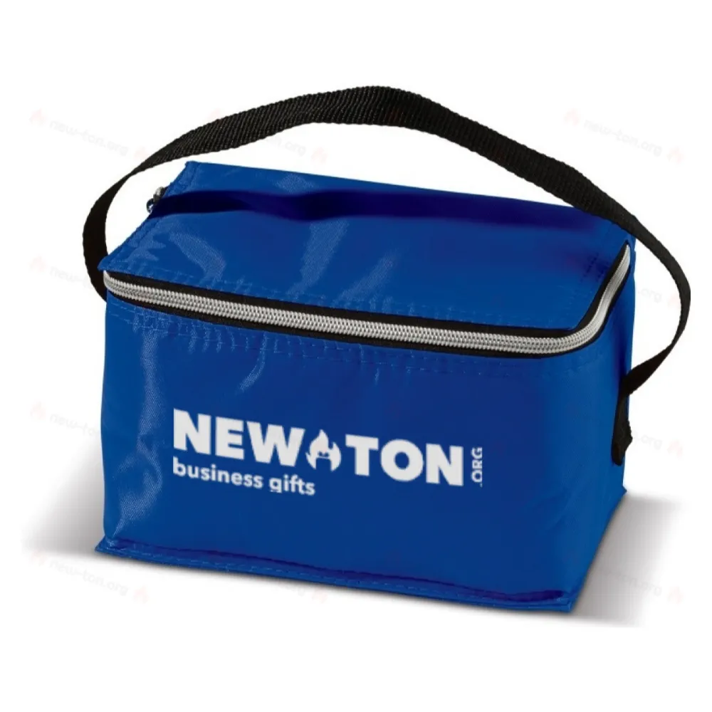 Сумка-холодильник из полиэстера с ручкой для переноски. Компактный, подходит для шести банок (330 мл). С застежкой-молнией для закрытия сумки. Идеальная сумка-холодильник для летнего дня.