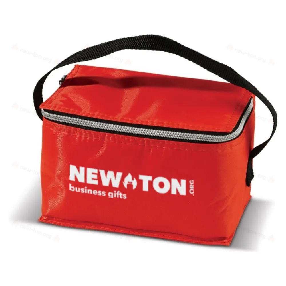 Сумка-холодильник из полиэстера с ручкой для переноски. Компактный, подходит для шести банок (330 мл). С застежкой-молнией для закрытия сумки. Идеальная сумка-холодильник для летнего дня.