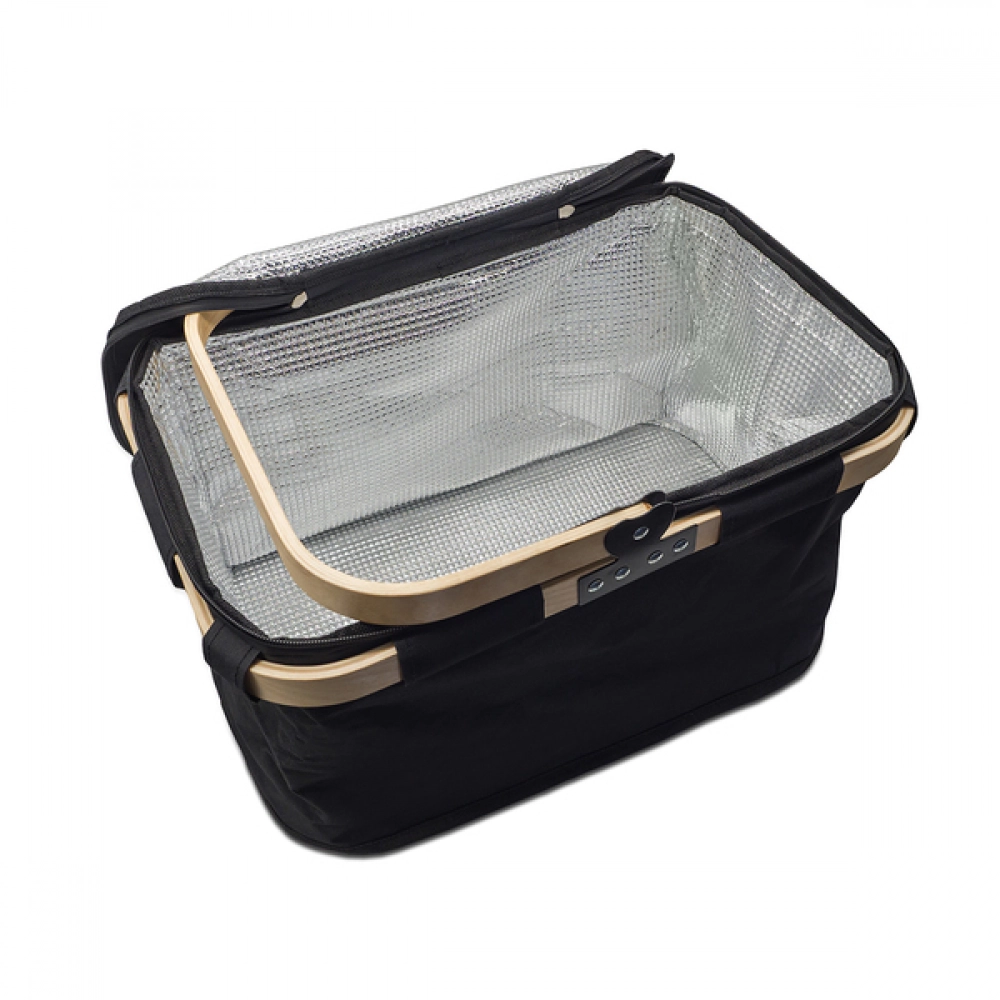 Стильная и практичная термо-сумка для покупок с молнией. Деревянная рама и ручка добавляют элегантности. Сумка обеспечивает отличную теплоизоляцию. Складной дизайн позволяет легко сложить ее для удобного хранения. Максимальная нагрузка: 9 кг. Вместимость: 28 литров.
