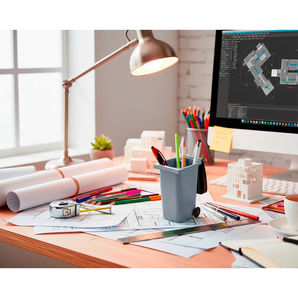 Держатель для ручек на колесиках в форме контейнера с крышкой и матовой отделкой, изготовленный из ПП.