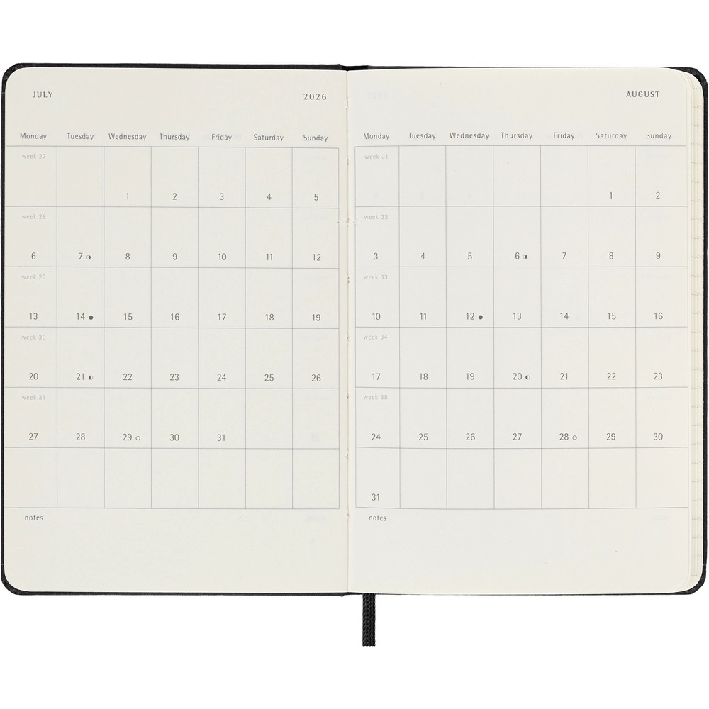 Дневник MOLESKINE (примерно формата A6, карманный), с твердой обложкой, на каждый день (400 страниц), с ляссе и резинкой для закрытия.