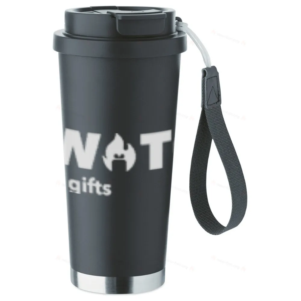 Термокружка с двойными стенками из 90% переработанной нержавеющей стали и 10% нержавеющей стали с пластиковой крышкой, трубочкой для питья и ремнем для переноски. Герметичный. Емкость: 500 мл.