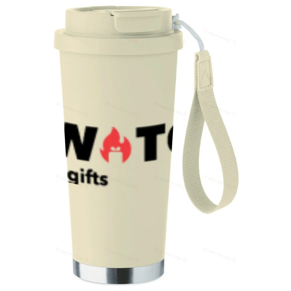 Термокружка с двойными стенками из 90% переработанной нержавеющей стали и 10% нержавеющей стали с пластиковой крышкой, трубочкой для питья и ремнем для переноски. Герметичный. Емкость: 500 мл.