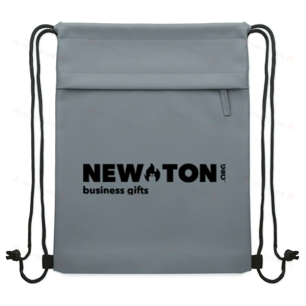 Рюкзак на шнурках из полиэстера 600D RPET и полиуретана с подкладкой из 190T переработанного полиэстера. Передний карман на молнии.