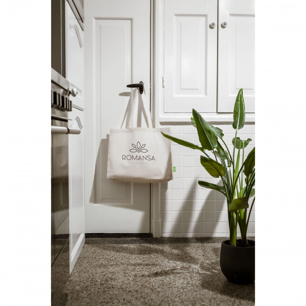 Прочная сумка для покупок из 100% органического качественного хлопка (180 г/м²). С длинными ручками. Эта сумка для покупок является отличной заменой одноразовым пластиковым пакетам. Объем примерно 19 литров.