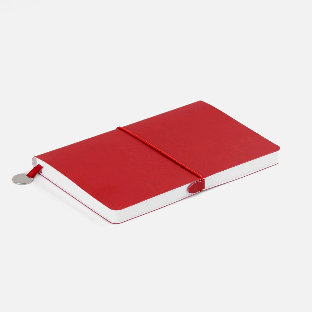Ежедневник с гибкой обложкой, выполнен из материала красный РР, дополнен ляссе в цвет обложки с металлическим шильдом. Блок 951, без календарной сетки и информационного блока: Кол-во страниц 256; Бумага белая, плотность 70 г/м²; Форзац и нахзац белые.