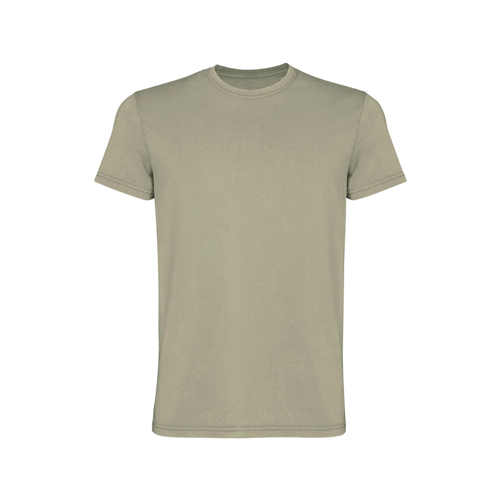 Мужская футболка с коротким рукавом из 100% хлопка с аксидной стиркой. Круглый вырез горловины из риба 1х1. Отстрочка в тон по горловине.