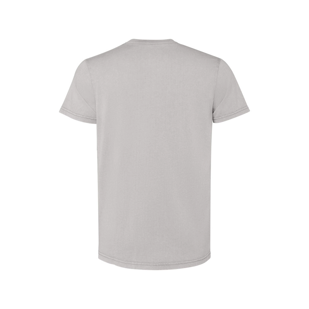 Мужская футболка с коротким рукавом из 100% хлопка с аксидной стиркой. Круглый вырез горловины из риба 1х1. Отстрочка в тон по горловине.