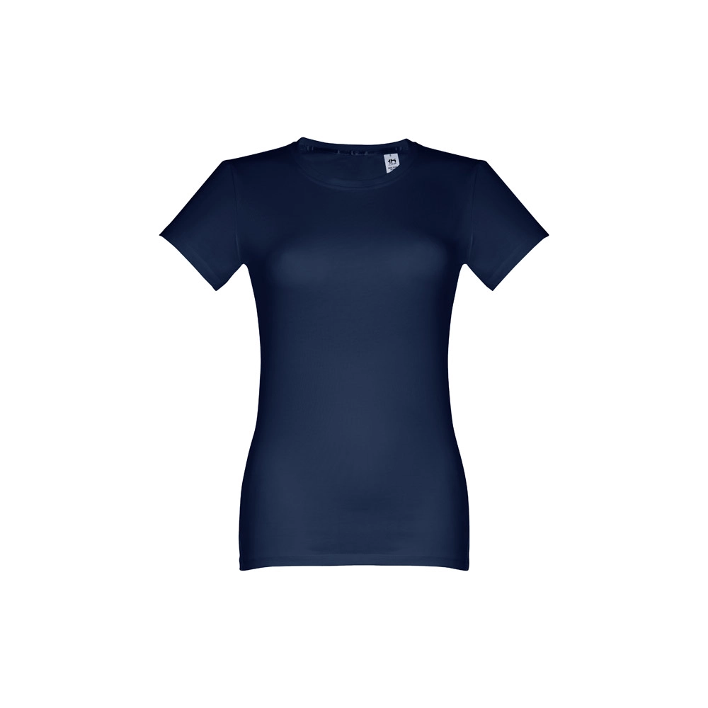 Женская приталенная футболка из 100% хлопкового трикотажа (190 г/м²) с пряжей из кардного хлопка (цвет 183: 90% хлопка и 10% вискозы). Имеет тонкий трикотажный воротник с усилением из атласной ленты. Изделие сшито по выкройке с двойным швом на манжетах рукавов и подоле. Доступные размеры: S, M, L, XL, XXL.