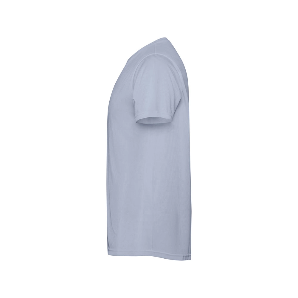 Детская футболка с коротким рукавом из технологичного полотна. Отстрочки в тон. Спинка с удлинением. Боковые швы со смещением вперед.