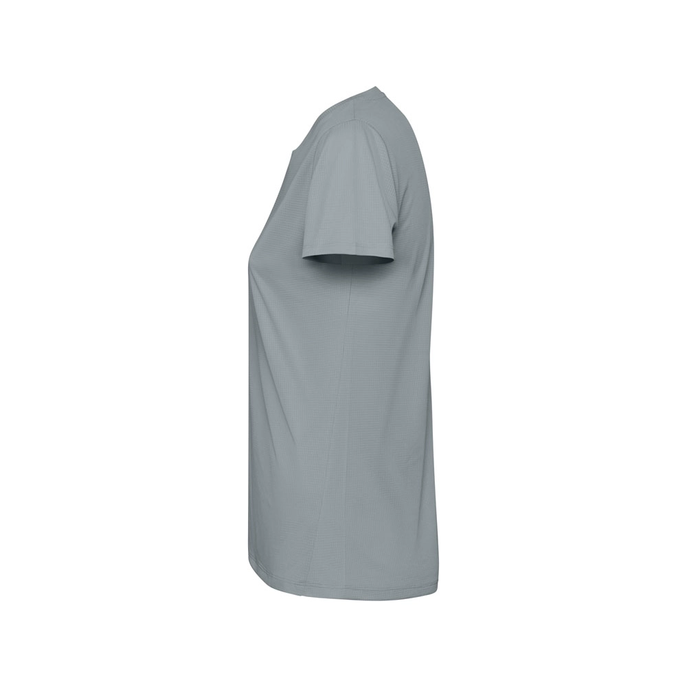 Женская футболка с коротким рукавом из технологичного полотна. Отстрочки в тон. Спинка с удлинением. Боковые швы со смещением вперед.