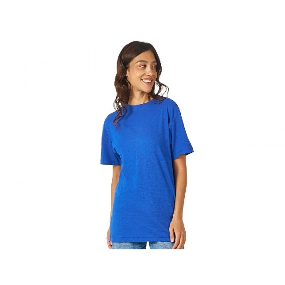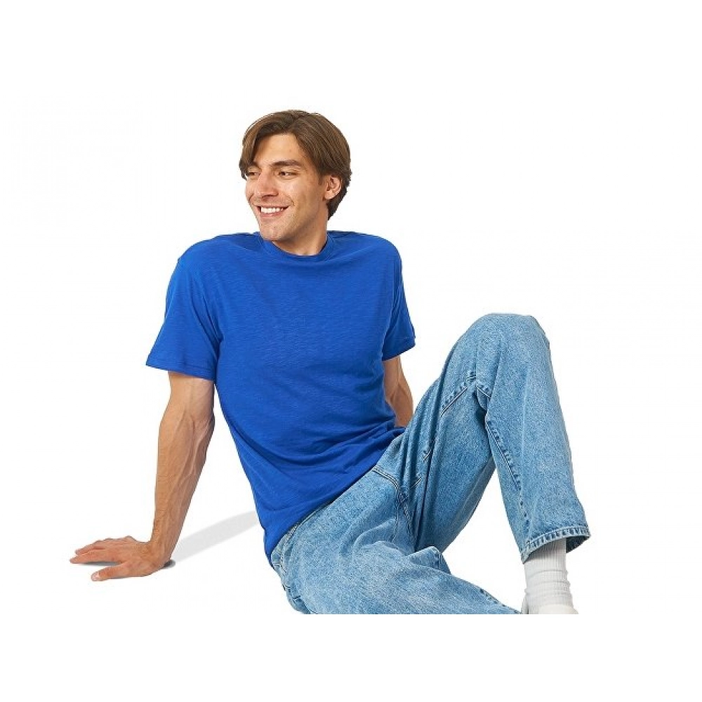 Полотно футболки имеет необычную структуру - с протяжками, но при этом гладкую поверхность, что обеспечивает идеальную поверхность для нанесения: прямая печать, трафаретная или термотрансфер прекрасно ложатся на такое полотно. Декоративная отстрочка по низу рукавов и изделия, а также отстрочка по горловине позволяют футболке дольше сохранять форму. - необычная полотно - идеальный поверхность для нанесения - универсальный прямой силуэт
