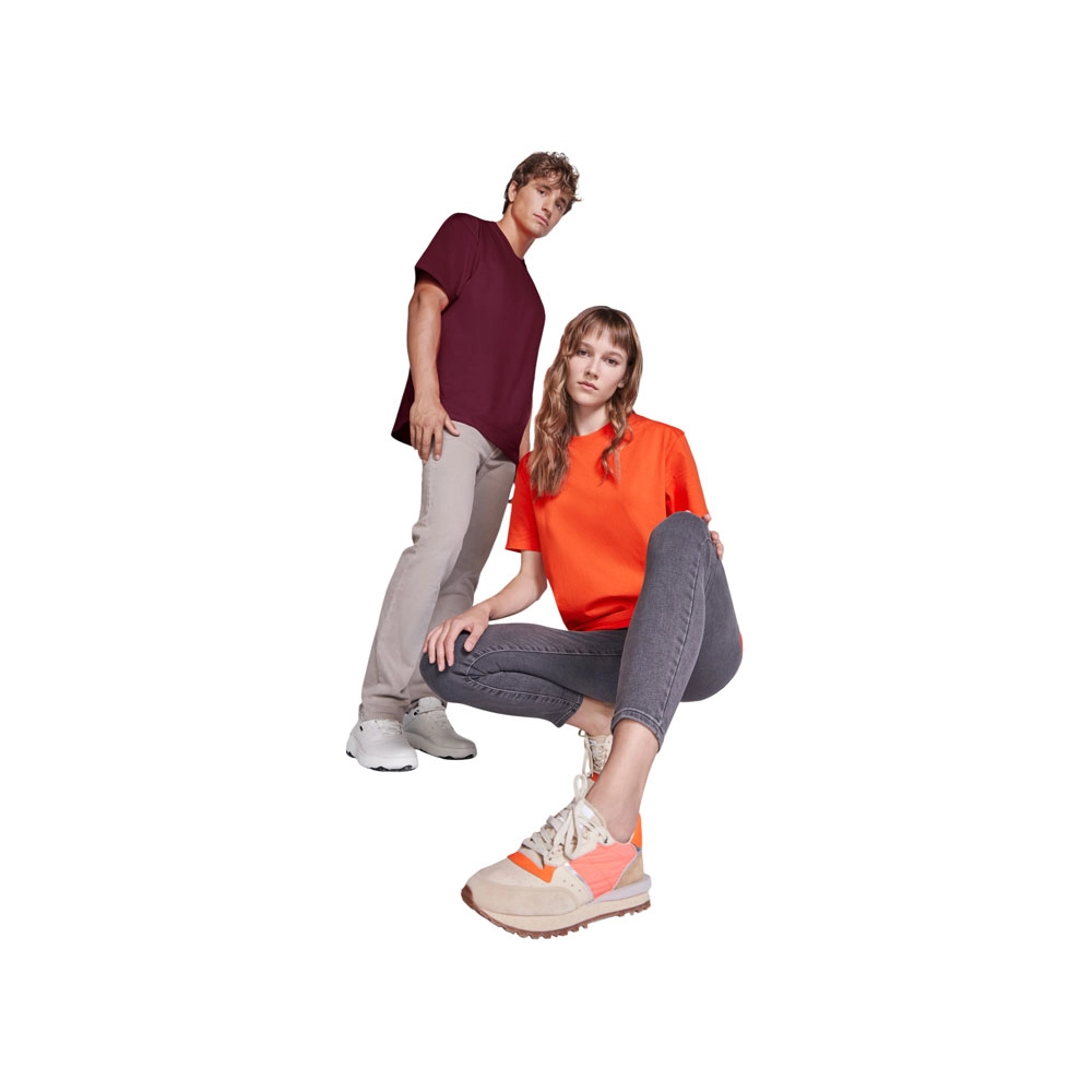 Оверсайз футболка с коротким рукавом. Круглый вырез горловины обработан рибом 2х1. Боковые швы. Широкая двойная отстрочка по рукавам и низу.