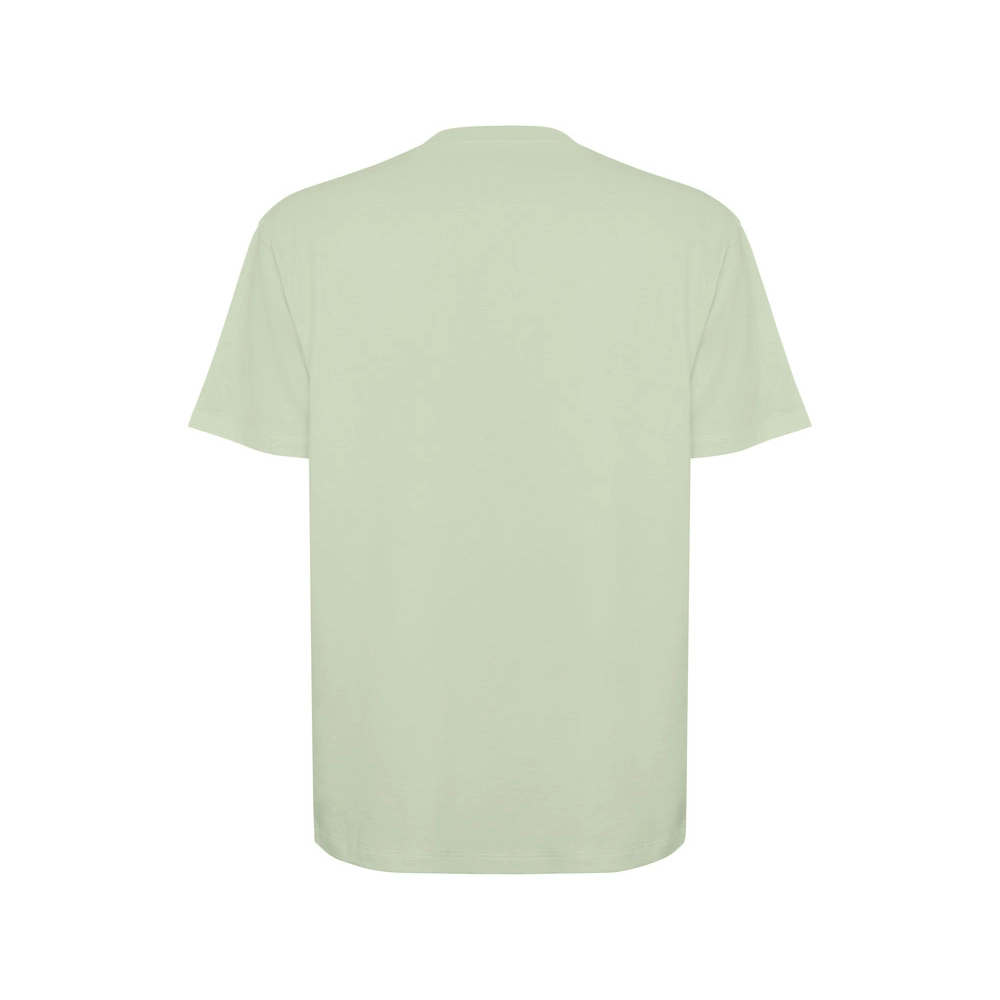 Оверсайз футболка с коротким рукавом. Круглый вырез горловины обработан рибом 2х1. Боковые швы. Широкая двойная отстрочка по рукавам и низу.