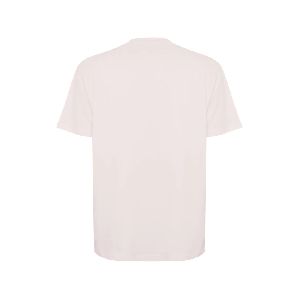 Оверсайз футболка с коротким рукавом. Круглый вырез горловины обработан рибом 2х1. Боковые швы. Широкая двойная отстрочка по рукавам и низу.