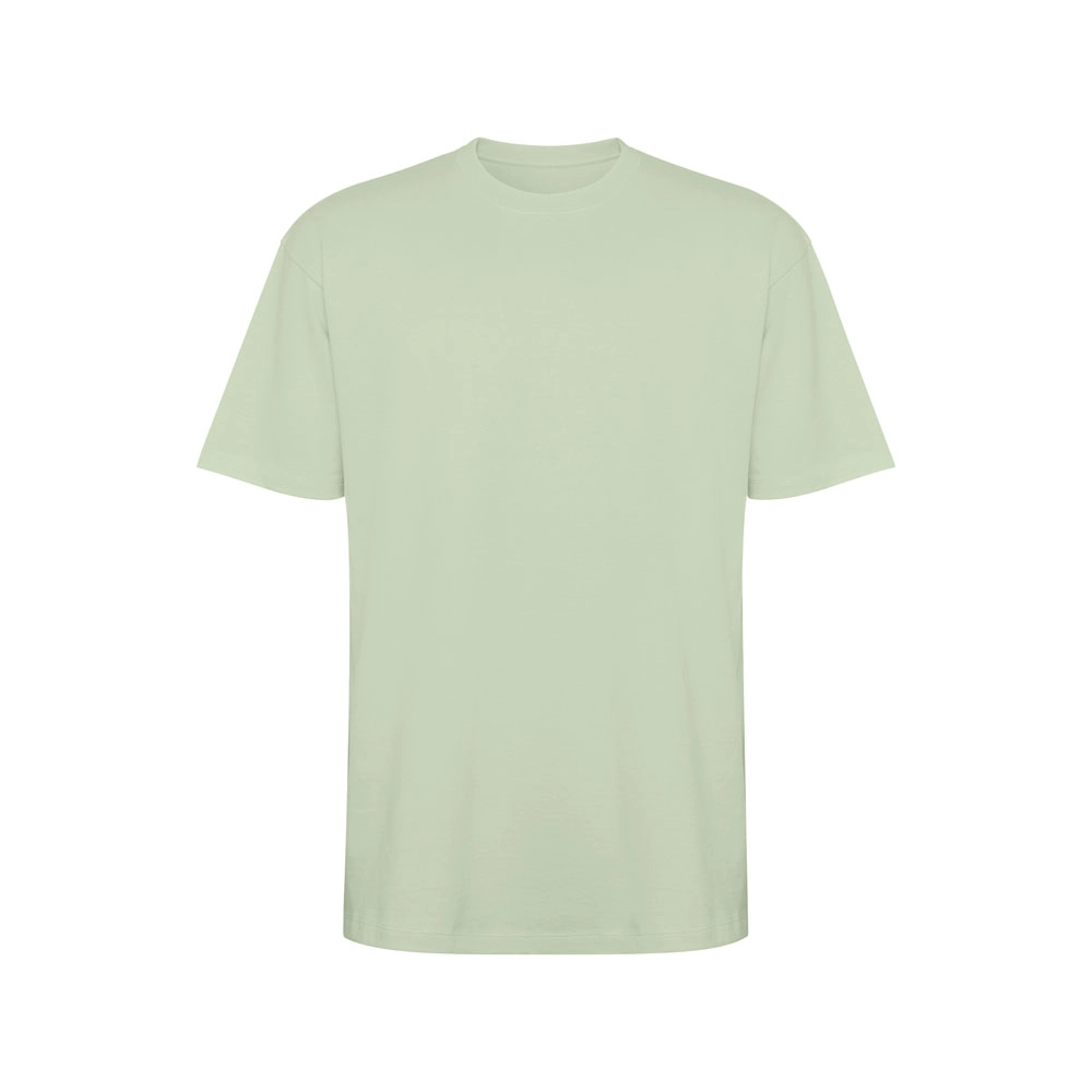Оверсайз футболка с коротким рукавом. Круглый вырез горловины обработан рибом 2х1. Боковые швы. Широкая двойная отстрочка по рукавам и низу.