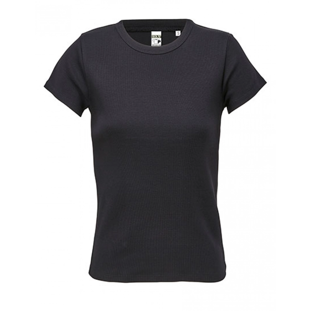 2x2 резинка | Прочесанный кольцевой хлопок | Женская, приталенная футболка | Ребристая окантовка | Лента на шее | Крой и шитье | Отрывная этикетка