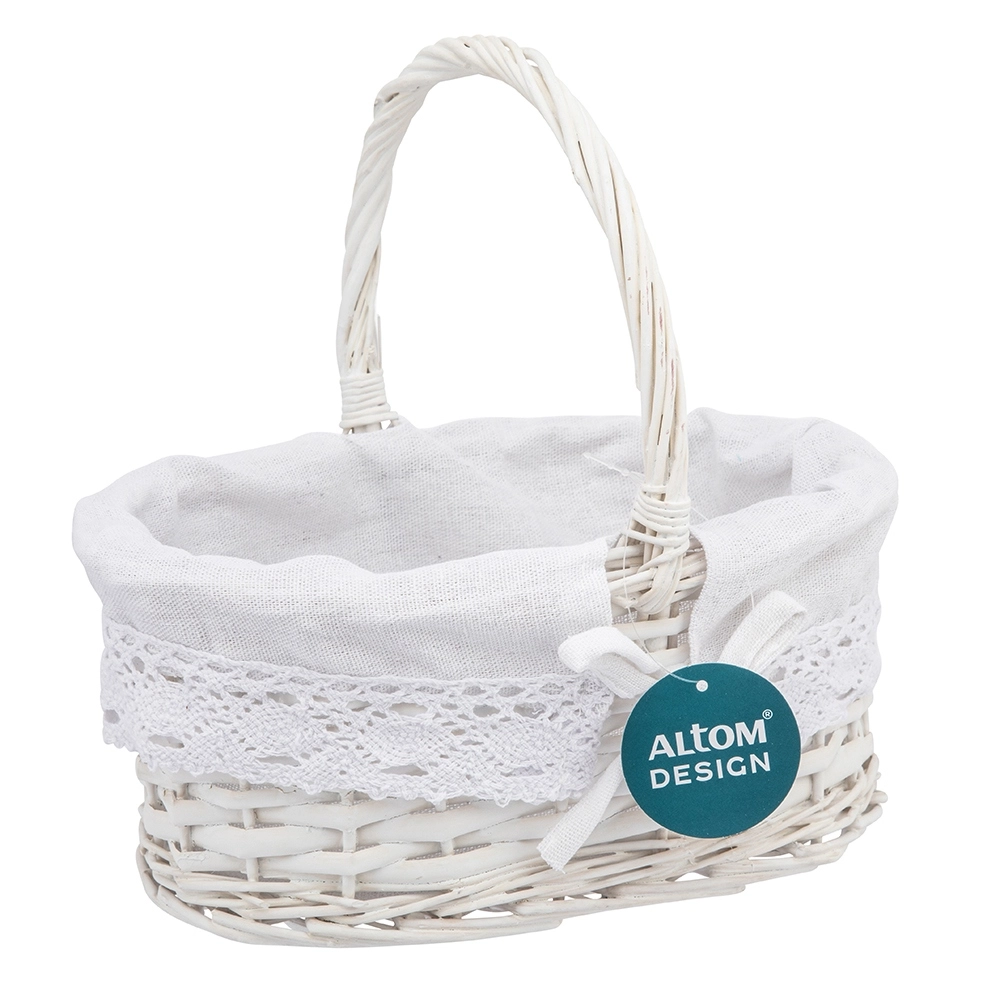 Ива овальная корзина с белой тканью 26x17x11/25 см EU45-680198 купить оптом по выгодной цене с логотипом вашей компании | деловые подарки и мерч new-ton.org