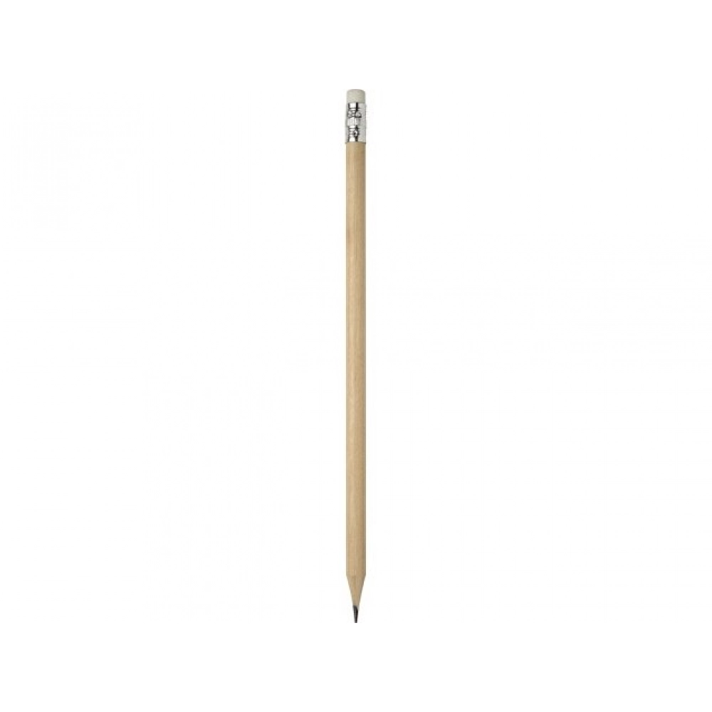 Карандаш с ластиком. Карандаш изготовлен из тополевой древесины, ластик — из графита, а обойма — из алюминия. Дерево.