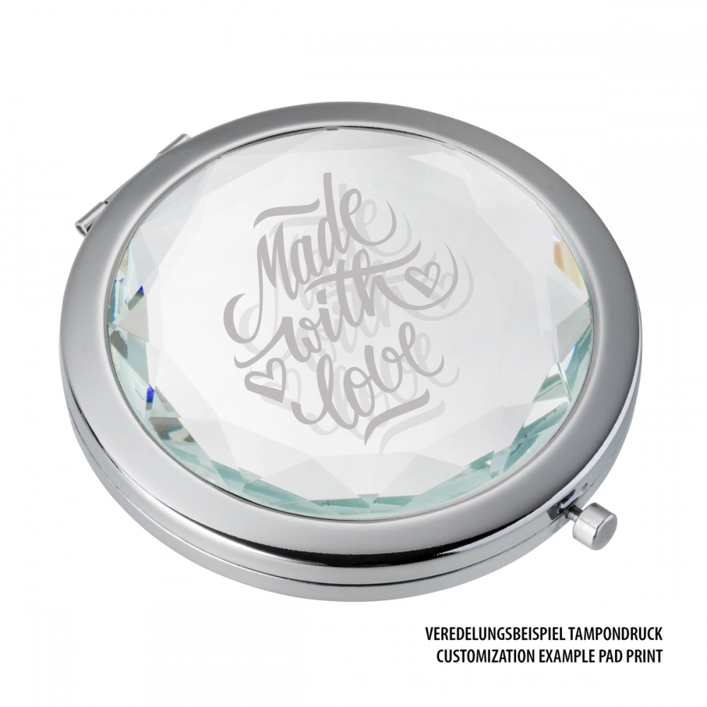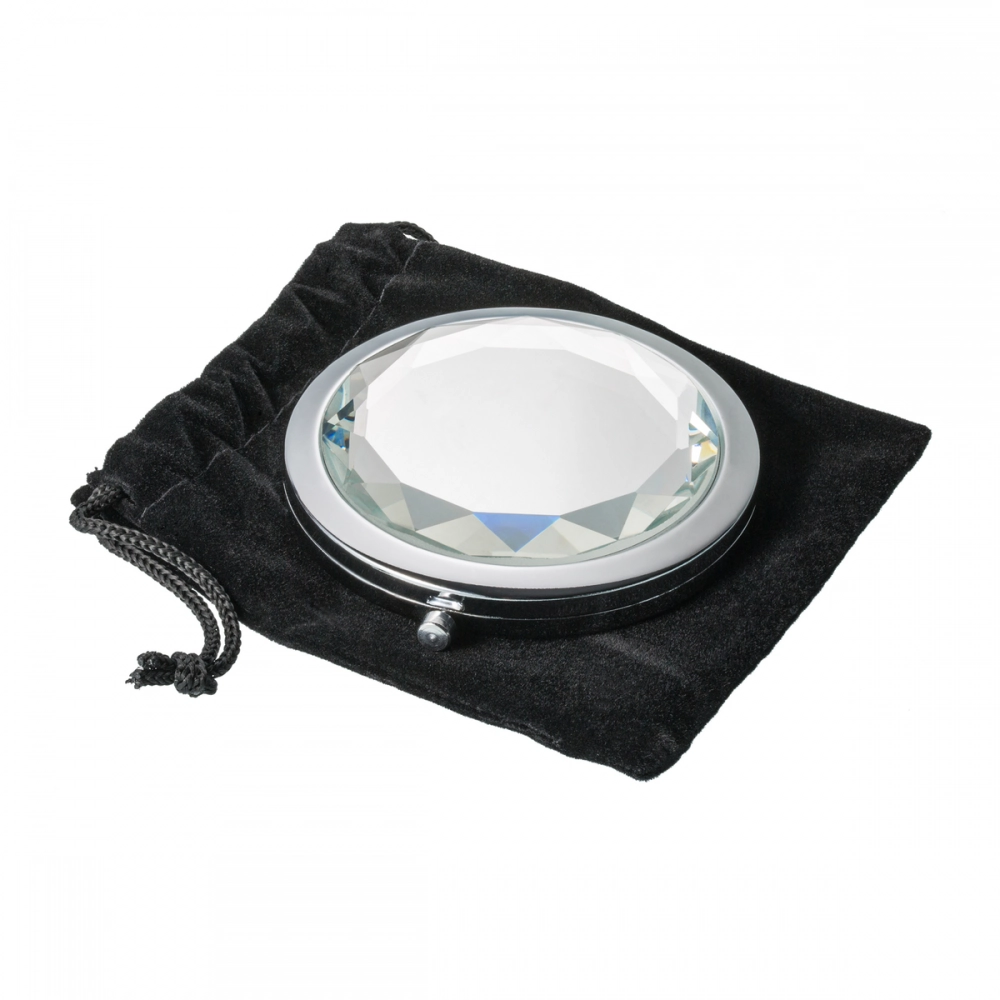 Роскошное карманное зеркало с изысканной стеклянной крышкой — идеальный аксессуар для дам, ценящих стиль и элегантность. Стеклянная поверхность может быть украшена вашим логотипом, что придаёт изделию особую привлекательность благодаря зеркальному эффекту. Зеркало поставляется в защитном бархатном мешочке.