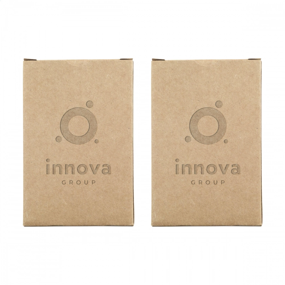 Две колоды игральных карт, изготовленные из высококачественной переработанной крафт-бумаги (250 г/м²). В каждой колоде 52 карты и 2 джокера. Карты хранятся в коробке из переработанного картона. Обратная сторона всех карт имеет одинаковое стандартное изображение. Эти колоды поставляются в деревянной коробке из сосны с выдвижной крышкой.