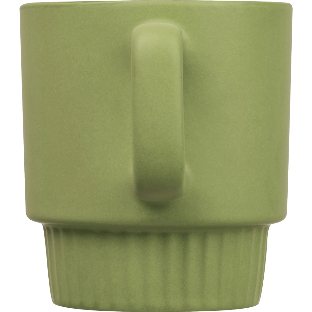 Керамическая кружка с ребристой нижней частью и объемом 300 мл. Матовая поверхность, удобная в использовании, идеально подходит для горячих напитков.