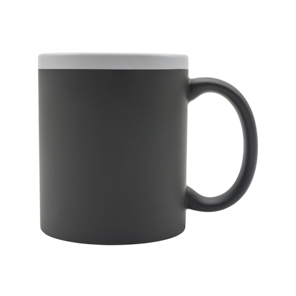 Керамическая кружка объемом 350 мл. Она имеет приятное покрытие soft-touch. Белый интерьер и край придают ей современный характер.